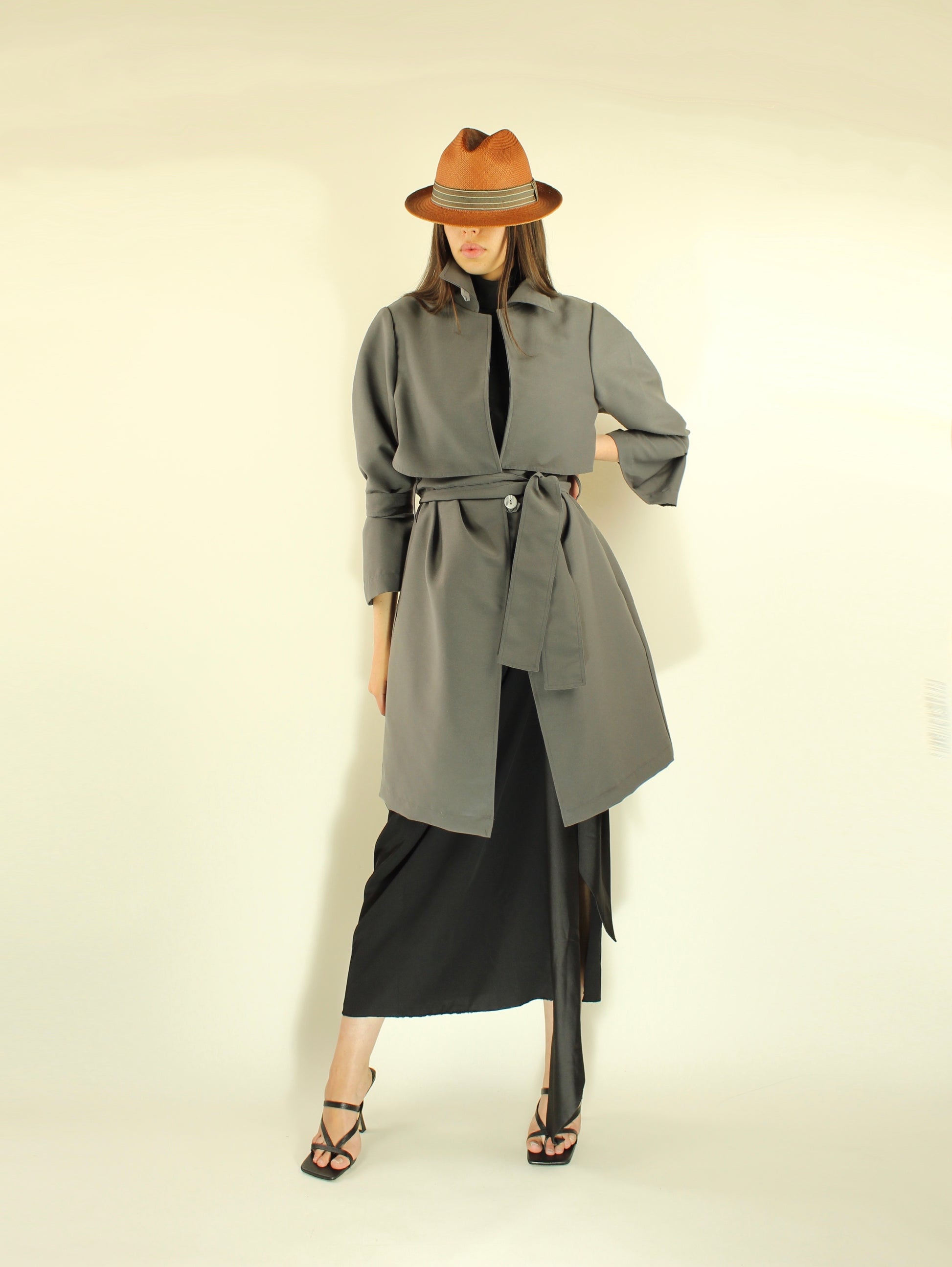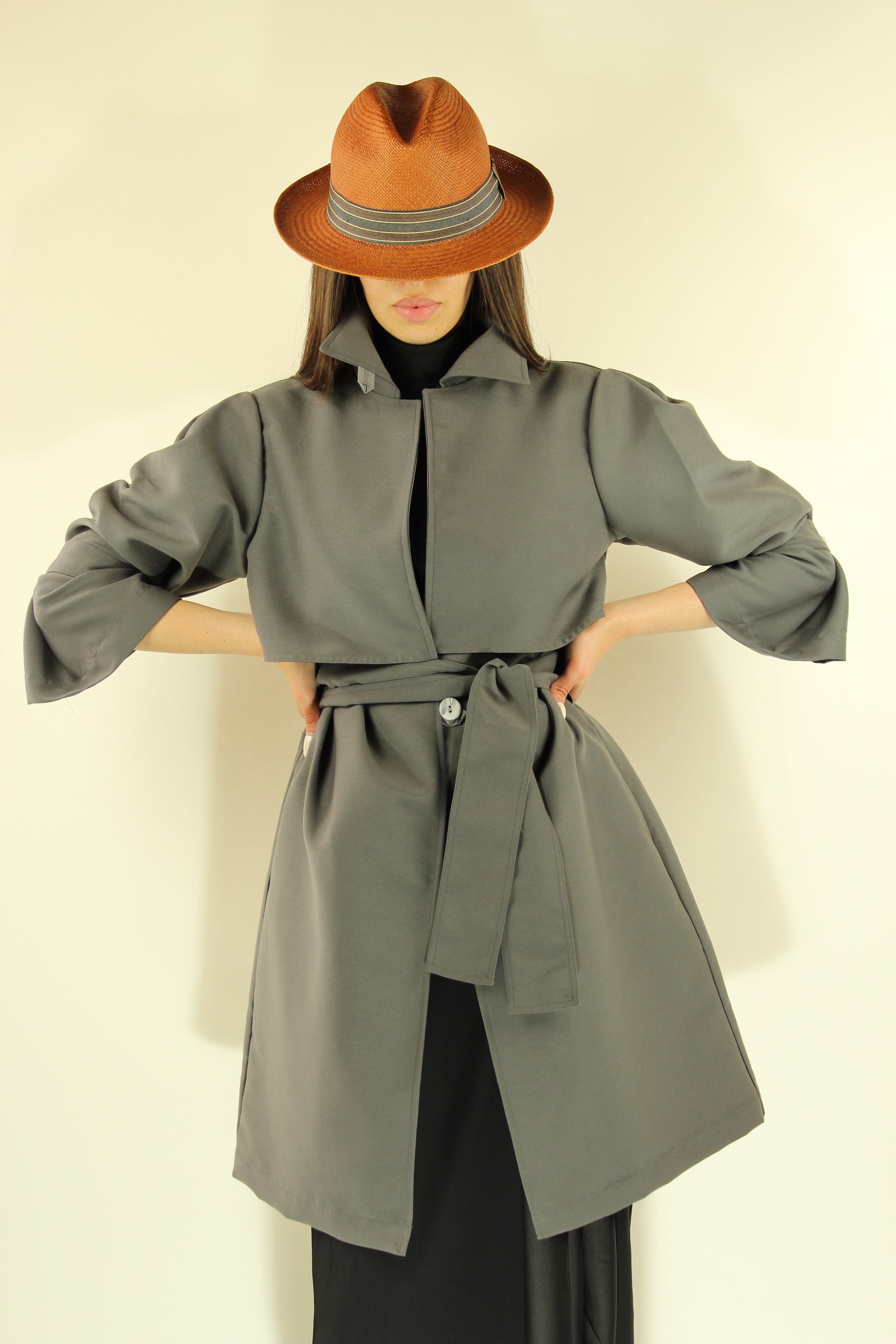 Gaban tipo Chanel gris es una prenda clásica y atemporal que demuestra elegancia y sofisticación. Su color gris neutro lo convierte en una pieza versátil, apta para diversas combinaciones y ocasiones.