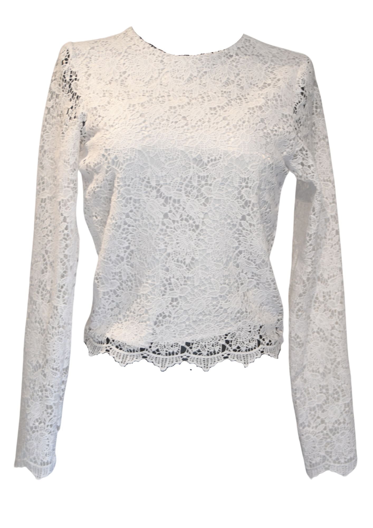 Blusa manga larga en tela blonda, es una prenda que mezcla elegancia con delicadeza . La tela blonda, con su patrón de encaje intrincado, ofrece un acabado sofisticado y romántico, creando un efecto visual llamativo y texturizado. Las mangas largas proporcionan una cobertura completa, mientras que el encaje añade un toque de sensualidad sin ser excesivo.