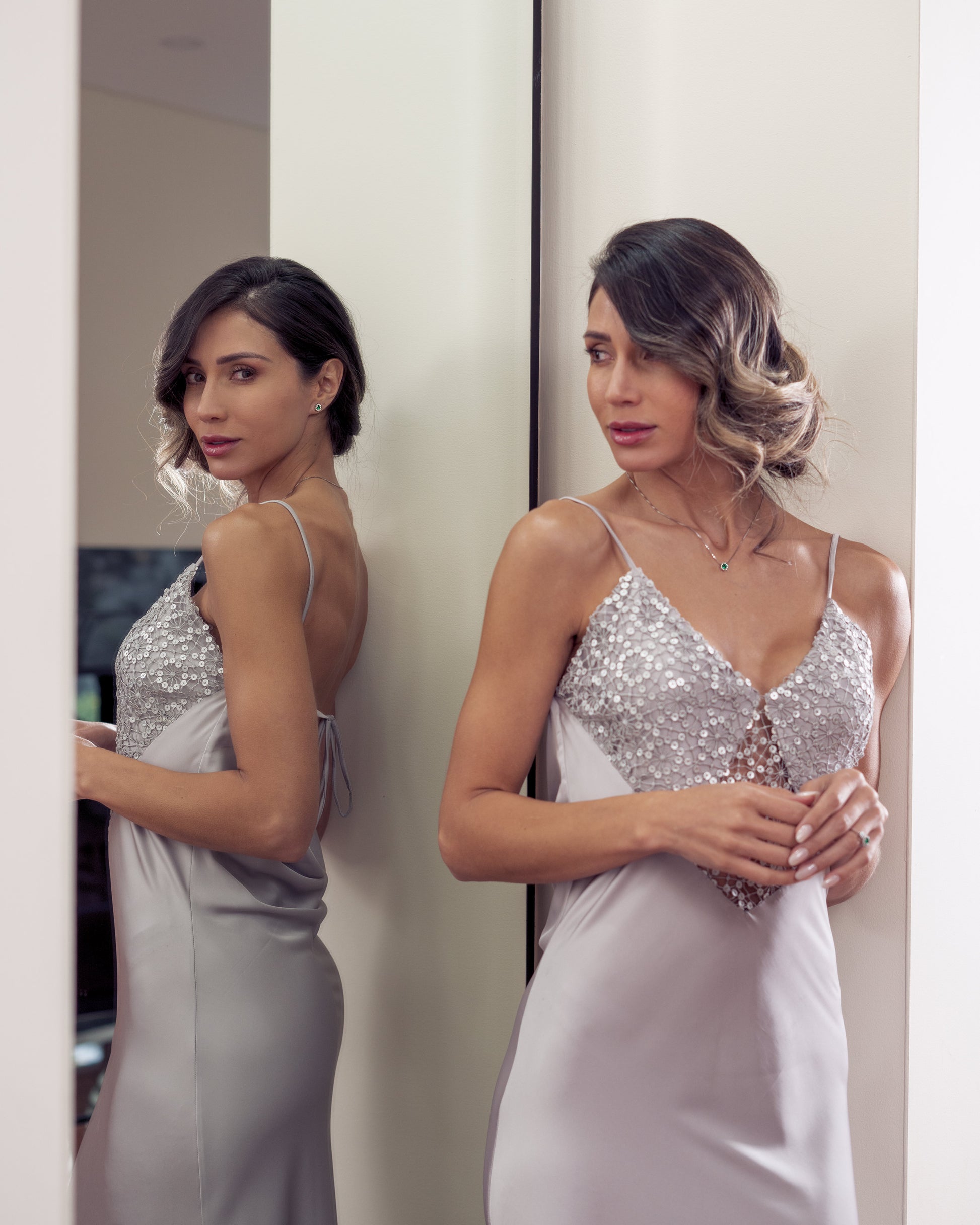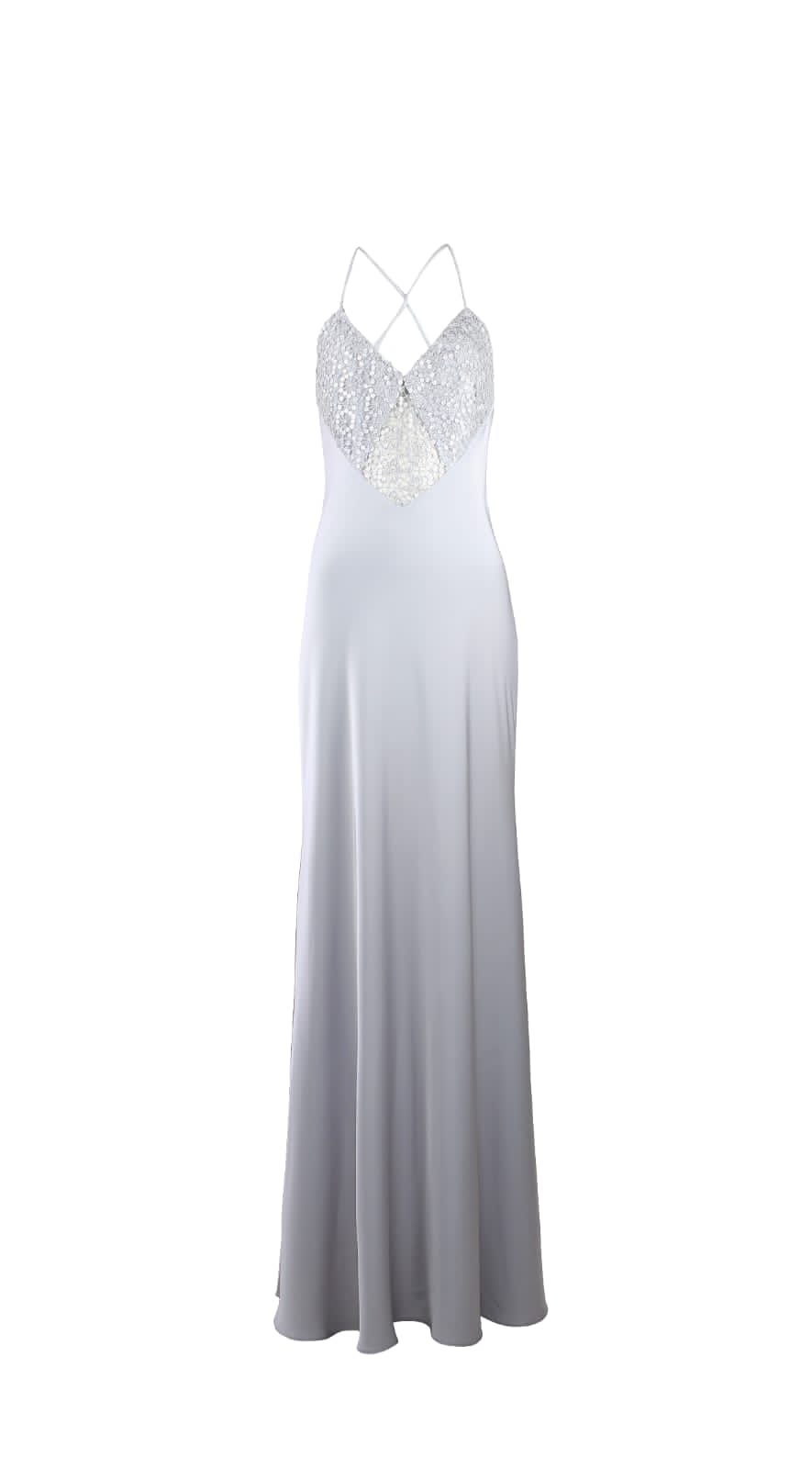 Este deslumbrante vestido largo en elegante seda color plateado es la opción perfecta para eventos nocturnos o matrimonios en climas cálidos. La seda, con su caída fluida y brillante, ofrece un look sofisticado y lujoso, mientras que el tono plateado captura la luz de manera espectacular, haciendo que resaltes con estilo en cualquier ocasión especial. Su diseño es ideal para ceremonias formales y eventos de gala, combinando comodidad y glamour para una presencia inolvidable durante la noche.