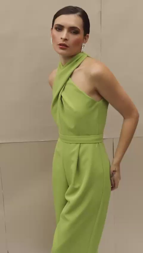 Este enterizo verde lima es una pieza que fusiona elegancia y modernidad con un toque de originalidad. Confeccionado en un tejido suave y ligero, el enterizo destaca por su delicado verde acido, evocando una sensación de frescura y serenidad. La elección de material asegura comodidad y un acabado pulido, ideal para eventos especiales, cenas elegantes o cualquier ocasión en la que desees destacar con un look distintivo.