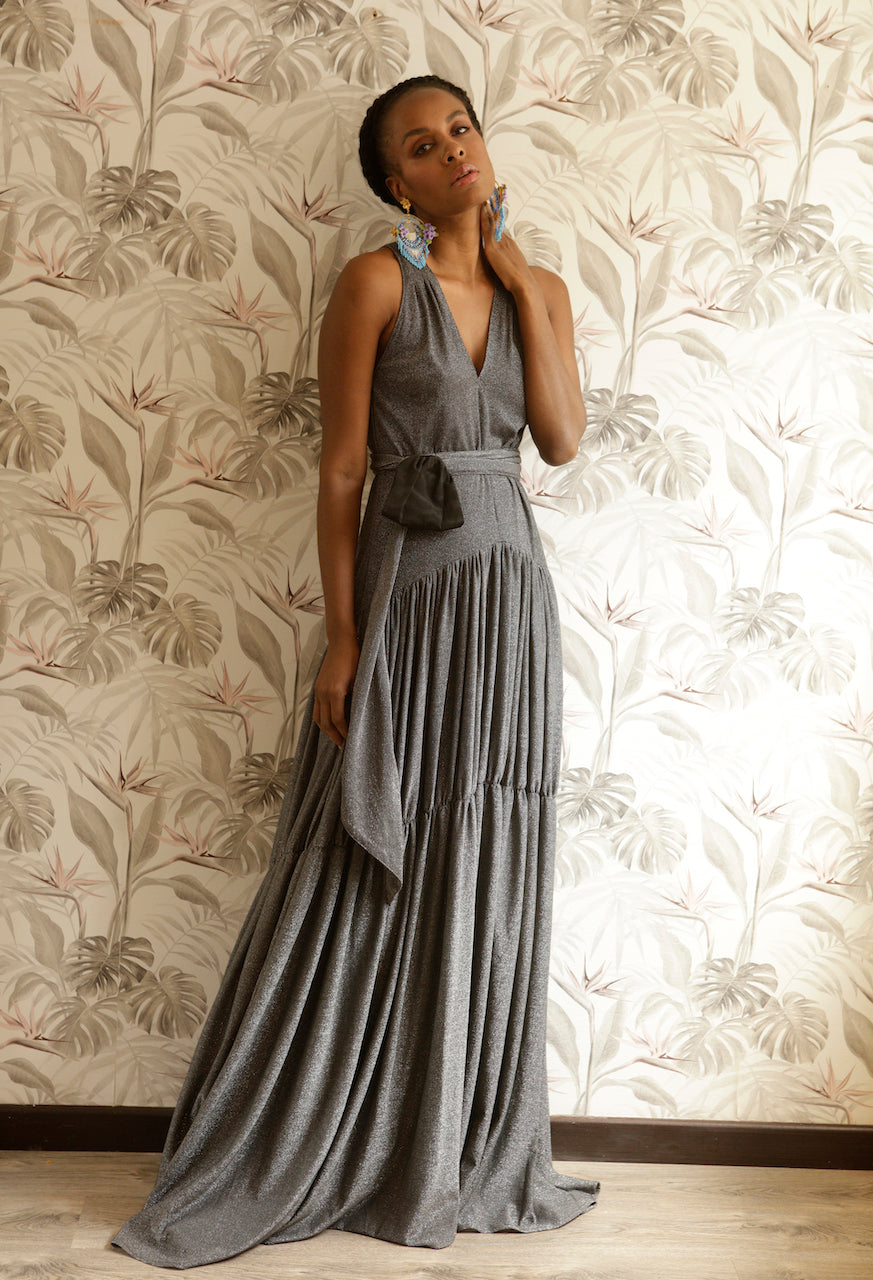 Este sofisticado vestido largo en gris oscuro es una opción elegante y versátil para cualquier evento formal. Con un diseño clásico y refinado, el vestido está realzado por un fajón que define la cintura y aporta un toque de estructura y estilo. El color gris oscuro ofrece una base elegante y versátil, ideal para combinar con accesorios en tonos variados. Perfecto para cenas formales, eventos de gala o ceremonias especiales, este vestido combina la elegancia atemporal con un ajuste favorecedor, asegurando que te sientas cómoda y a la moda en cualquier ocasión.